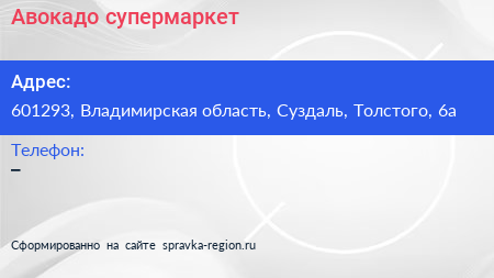 Авокадо, супермаркет по адресу 601293, Владимирская область, Суздаль, Толстого, 6а в дальнейшем Организация, размещена в следующих категориях: