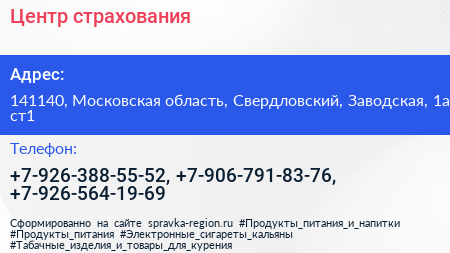Центр страхования по адресу 141140, Московская область, Свердловский, Заводская, 1а ст1 в дальнейшем Организация, размещена в следующих категориях: