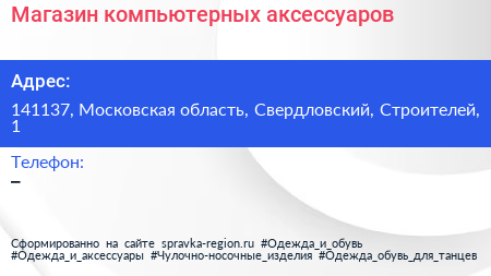 Магазин компьютерных аксессуаров по адресу 141137, Московская область, Свердловский, Строителей, 1 в дальнейшем Организация, размещена в следующих категориях: