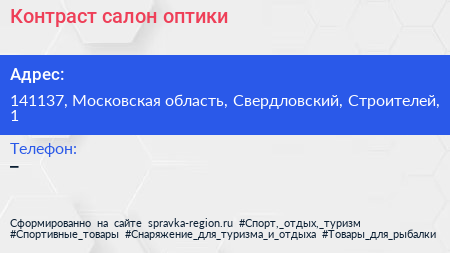 Контраст, салон оптики по адресу 141137, Московская область, Свердловский, Строителей, 1 в дальнейшем Организация, размещена в следующих категориях: