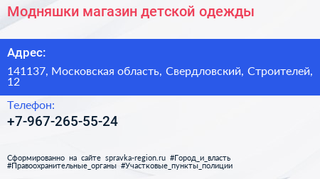 Модняшки, магазин детской одежды по адресу 141137, Московская область, Свердловский, Строителей, 12 в дальнейшем Организация, размещена в следующих категориях: