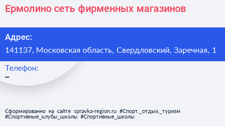 Ермолино, сеть фирменных магазинов по адресу 141137, Московская область, Свердловский, Заречная, 1 в дальнейшем Организация, размещена в следующих категориях:
