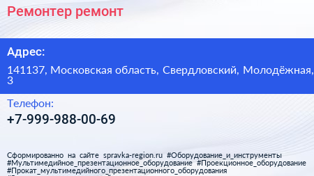 Ремонтер ремонт по адресу 141137, Московская область, Свердловский, Молодёжная, 3 в дальнейшем Организация, размещена в следующих категориях: