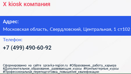 X-kiosk, компания по адресу Московская область, Свердловский, Центральная, 1 ст102 в дальнейшем Организация, размещена в следующих категориях: