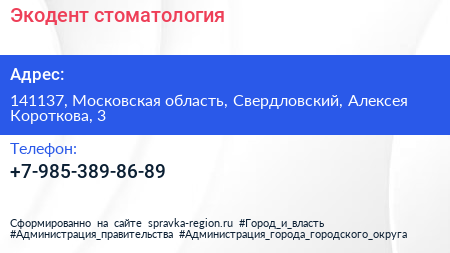 Экодент, стоматология по адресу 141137, Московская область, Свердловский, Алексея Короткова, 3 в дальнейшем Организация, размещена в следующих категориях: