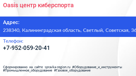 Oasis, центр киберспорта по адресу 238340, Калининградская область, Светлый, Советская, 36 в дальнейшем Организация, размещена в следующих категориях: