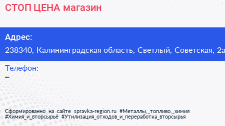 СТОП ЦЕНА, магазин по адресу 238340, Калининградская область, Светлый, Советская, 2а в дальнейшем Организация, размещена в следующих категориях: