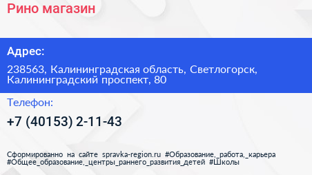 Рино, магазин по адресу 238563, Калининградская область, Светлогорск, Калининградский проспект, 80 в дальнейшем Организация, размещена в следующих категориях: