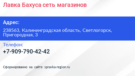 Лавка Бахуса, сеть магазинов по адресу 238563, Калининградская область, Светлогорск, Пригородная, 3 в дальнейшем Организация, размещена в следующих категориях: