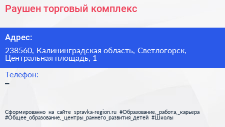 Раушен, торговый комплекс по адресу 238560, Калининградская область, Светлогорск, Центральная площадь, 1 в дальнейшем Организация, размещена в следующих категориях: