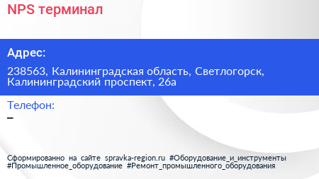 NPS, терминал по адресу 238563, Калининградская область, Светлогорск, Калининградский проспект, 26а в дальнейшем Организация, размещена в следующих категориях: