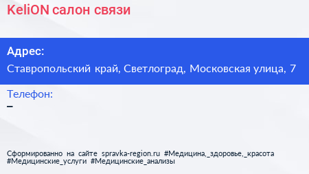 KeliON, салон связи по адресу Ставропольский край, Светлоград, Московская улица, 7 в дальнейшем Организация, размещена в следующих категориях: