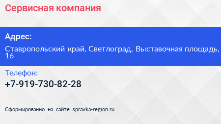 Сервисная компания по адресу Ставропольский край, Светлоград, Выставочная площадь, 16 в дальнейшем Организация, размещена в следующих категориях: