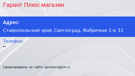 Гарант-Плюс, магазин по адресу Ставропольский край, Светлоград, Фабричная 1-я, 11 в дальнейшем Организация, размещена в следующих категориях: