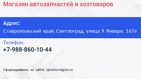 Магазин автозапчастей и хозтоваров по адресу Ставропольский край, Светлоград, улица 9 Января, 167а в дальнейшем Организация, размещена в следующих категориях: