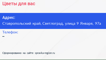 Цветы для вас по адресу Ставропольский край, Светлоград, улица 9 Января, 97а в дальнейшем Организация, размещена в следующих категориях: