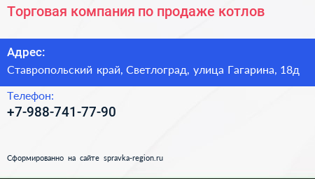 Торговая компания по продаже котлов по адресу Ставропольский край, Светлоград, улица Гагарина, 18д в дальнейшем Организация, размещена в следующих категориях: