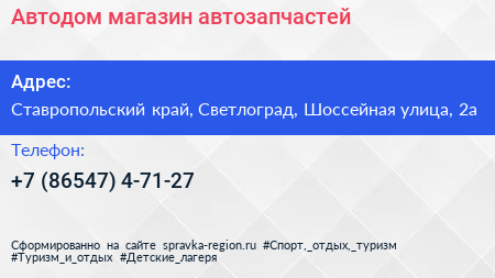 Автодом, магазин автозапчастей по адресу Ставропольский край, Светлоград, Шоссейная улица, 2а в дальнейшем Организация, размещена в следующих категориях: