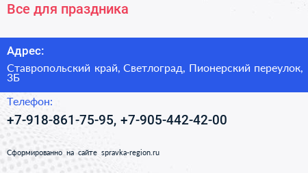Все для праздника по адресу Ставропольский край, Светлоград, Пионерский переулок, 3Б в дальнейшем Организация, размещена в следующих категориях: