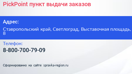 PickPoint, пункт выдачи заказов по адресу Ставропольский край, Светлоград, Выставочная площадь, 8 в дальнейшем Организация, размещена в следующих категориях: