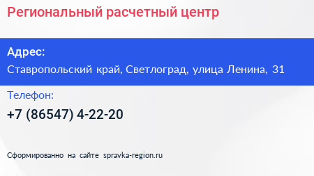 Региональный расчетный центр по адресу Ставропольский край, Светлоград, улица Ленина, 31 в дальнейшем Организация, размещена в следующих категориях: