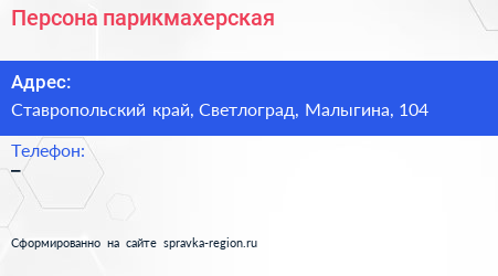 Персона, парикмахерская по адресу Ставропольский край, Светлоград, Малыгина, 104 в дальнейшем Организация, размещена в следующих категориях: