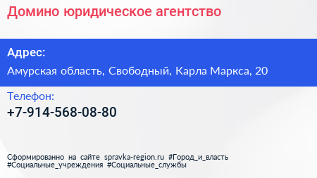 Домино, юридическое агентство по адресу Амурская область, Свободный, Карла Маркса, 20 в дальнейшем Организация, размещена в следующих категориях: