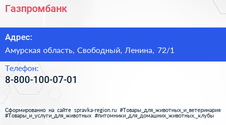 Газпромбанк по адресу Амурская область, Свободный, Ленина, 72/1 в дальнейшем Организация, размещена в следующих категориях: