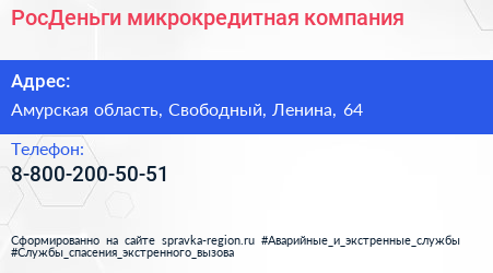 РосДеньги, микрокредитная компания по адресу Амурская область, Свободный, Ленина, 64 в дальнейшем Организация, размещена в следующих категориях: