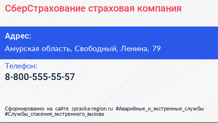 СберСтрахование, страховая компания по адресу Амурская область, Свободный, Ленина, 79 в дальнейшем Организация, размещена в следующих категориях: