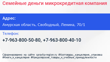 Семейные деньги, микрокредитная компания по адресу Амурская область, Свободный, Ленина, 70/1 в дальнейшем Организация, размещена в следующих категориях: