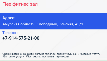 Flex, фитнес-зал по адресу Амурская область, Свободный, Зейская, 43/1 в дальнейшем Организация, размещена в следующих категориях: