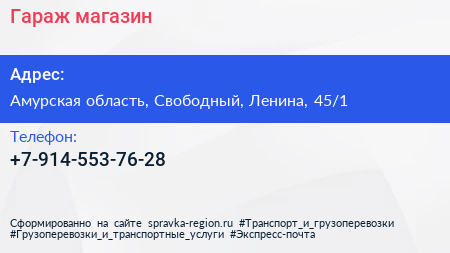 Гараж, магазин по адресу Амурская область, Свободный, Ленина, 45/1 в дальнейшем Организация, размещена в следующих категориях: