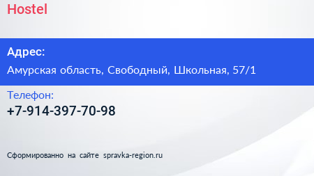 Hostel по адресу Амурская область, Свободный, Школьная, 57/1 в дальнейшем Организация, размещена в следующих категориях:
