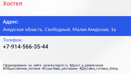 Хостел по адресу Амурская область, Свободный, Малая Амурская, 1а в дальнейшем Организация, размещена в следующих категориях: