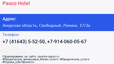 Pasco Hotel по адресу Амурская область, Свободный, Ленина, 17/3а в дальнейшем Организация, размещена в следующих категориях: