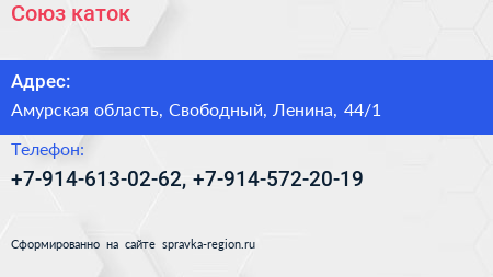 Союз, каток по адресу Амурская область, Свободный, Ленина, 44/1 в дальнейшем Организация, размещена в следующих категориях: