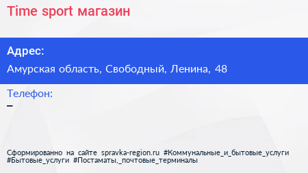 Time sport, магазин по адресу Амурская область, Свободный, Ленина, 48 в дальнейшем Организация, размещена в следующих категориях: