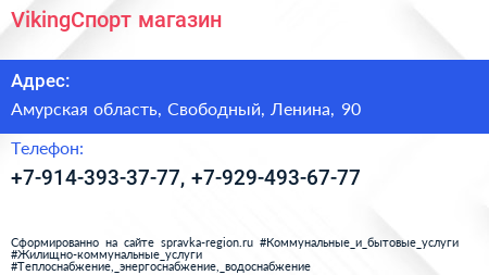 VikingСпорт, магазин по адресу Амурская область, Свободный, Ленина, 90 в дальнейшем Организация, размещена в следующих категориях: