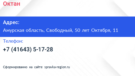 Октан по адресу Амурская область, Свободный, 50 лет Октября, 11 в дальнейшем Организация, размещена в следующих категориях: