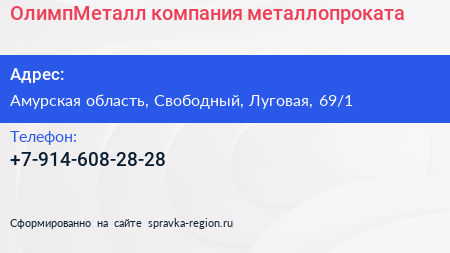 ОлимпМеталл, компания металлопроката по адресу Амурская область, Свободный, Луговая, 69/1 в дальнейшем Организация, размещена в следующих категориях: