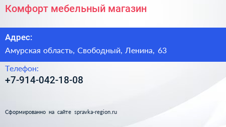Комфорт, мебельный магазин по адресу Амурская область, Свободный, Ленина, 63 в дальнейшем Организация, размещена в следующих категориях: