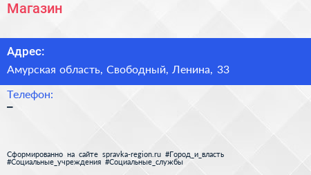 Магазин по адресу Амурская область, Свободный, Ленина, 33 в дальнейшем Организация, размещена в следующих категориях: