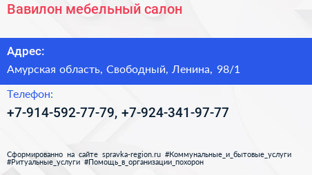 Вавилон, мебельный салон по адресу Амурская область, Свободный, Ленина, 98/1 в дальнейшем Организация, размещена в следующих категориях: