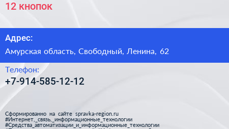 12 кнопок по адресу Амурская область, Свободный, Ленина, 62 в дальнейшем Организация, размещена в следующих категориях:
