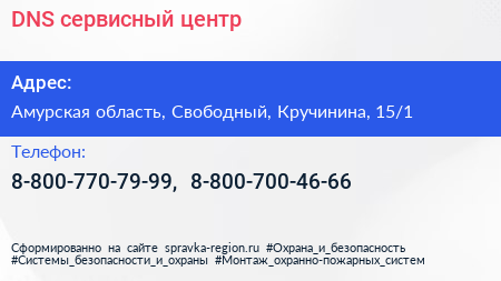 DNS, сервисный центр по адресу Амурская область, Свободный, Кручинина, 15/1 в дальнейшем Организация, размещена в следующих категориях: