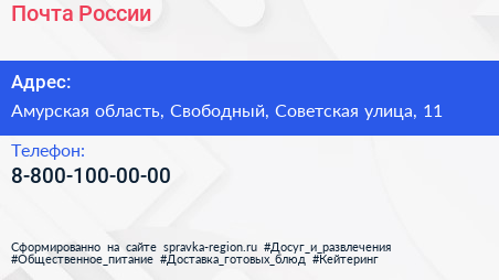 Почта России по адресу Амурская область, Свободный, Советская улица, 11 в дальнейшем Организация, размещена в следующих категориях: