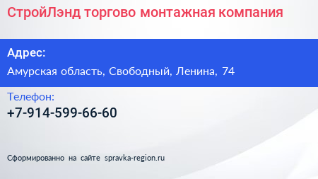 СтройЛэнд, торгово-монтажная компания по адресу Амурская область, Свободный, Ленина, 74 в дальнейшем Организация, размещена в следующих категориях: