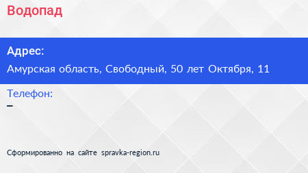 Водопад по адресу Амурская область, Свободный, 50 лет Октября, 11 в дальнейшем Организация, размещена в следующих категориях: