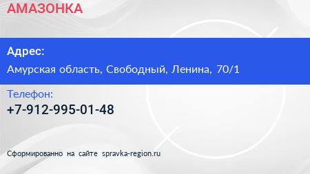 АМАЗОНКА по адресу Амурская область, Свободный, Ленина, 70/1 в дальнейшем Организация, размещена в следующих категориях: